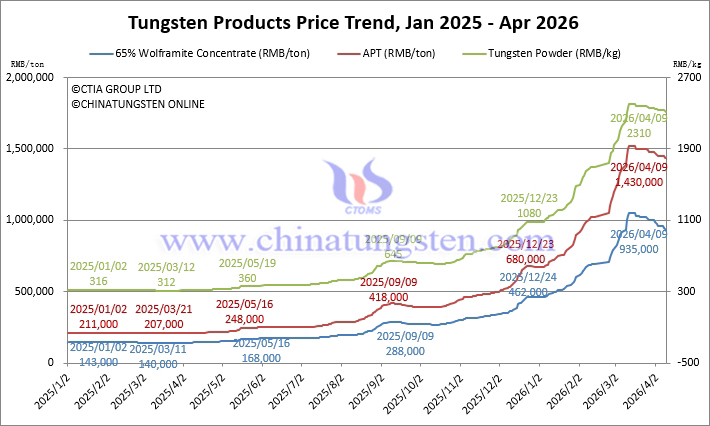 2026年3月タングステン価格が数十年来の最高水準に達した。この高騰は、世界各地の紛争における軍需物資の消費増加と、中国の輸出規制によって引き起こされた供給危機の深刻化に起因する。