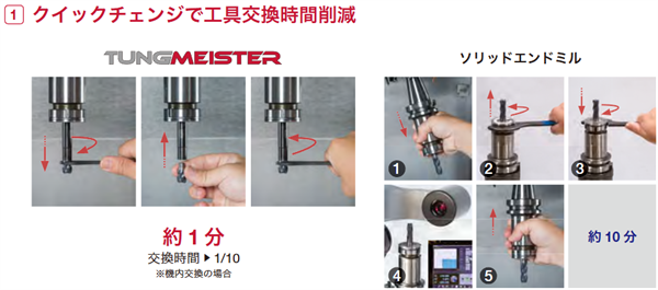 機内交換の場合、クイックチェンジで工具交換時間削減。